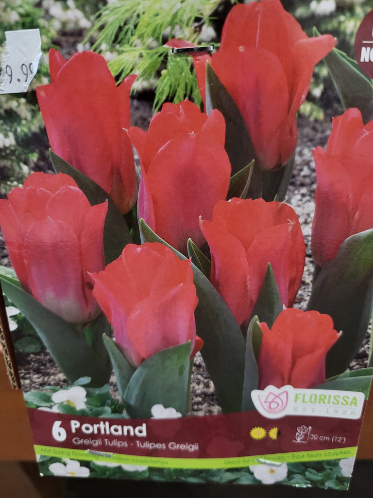 Portland is a new variety of Greigii Tulips, unique maroon mottled leaves. Early blooming tulips March-April. Can bloom many years in the garden. Great for containers.